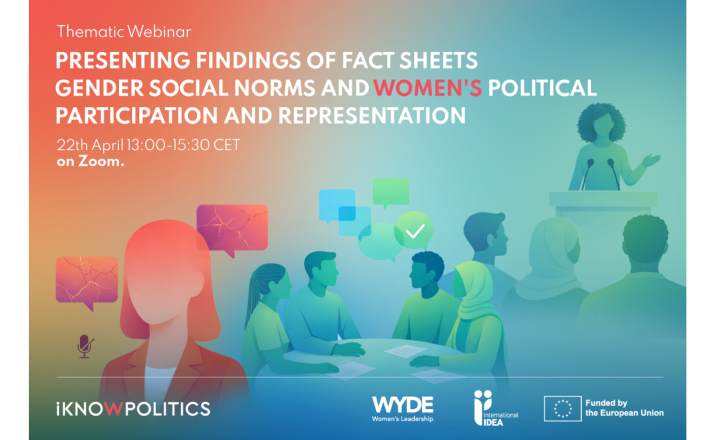 This webinar will present and discuss a series of thematic fact sheets that explore how social norms influence women’s political participation and representation. The fact sheets draw on insights and evidence generated through WYDE interventions, including regional and intergenerational dialogues, young women’s empowerment academies, engagement with media practitioners, and contributions from the iKNOW Politics platform and partners.