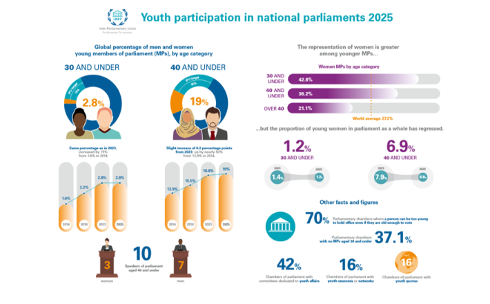 Youth participation in national parliaments 2025 infographic