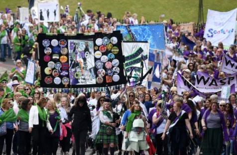 Women across the UK have marched together to create a living artwork, to mark 100 years since the first British women won the vote.