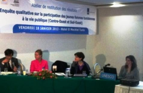 Le Centre de la Femme Arabe pour la formation et la recherche (CAWTAR) et l’UNESCO ont piloté une enquête qualitative, durant l’année 2012, au sujet de la participation des jeunes femmes à la vie publique, à Tozeur Gafsa et Kasserine, Tunisie.