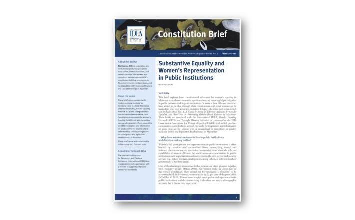 This brief explores how constitutional advocates for women’s equality in Myanmar can advance women’s representation and meaningful participation in public decision-making and institutions. It looks at how different countries have aimed to do this through their constitutions, and what lessons can be learned for your own advocacy strategies.