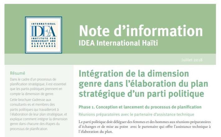 Cette brochure s’adresse aux membres des partis politiques qui travailleront à l’élaboration de leur plan stratégique, et explique comment intégrer la dimension genre dans chacune des étapes du processus de planification.
